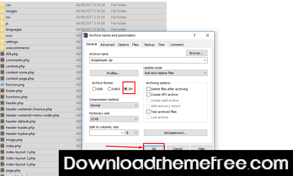 Compress file install with fomat ( .zip )