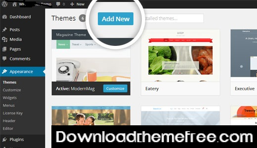 Once you are on the themes page, click on the Add New button at the top.