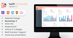 Swift University Admin is Bootstrap4 Material Design premium admin dashboard theme. The template is used for University, Collage and School.Demo: https://themeforest.net/item/swift-university-responsive-material-admin-template-for-school-colleges/19535863 Do you need any custome Development Click here and fill your requirement...