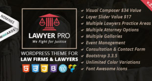 Lawyer Pro is a WordPress responsive theme designed for Lawyers, Attorneys, Law firms and Corporate sites. Lawyer Pro; comes with all the features required by a law site site like Practice Areas, Attorney Profiles, News, Gallery, Consultation and Booking forms, Honor & Awards, Event Management, Testimonials and multiple blog layouts.Demo: https://themeforest.net/item/lawyer-pro-responsive-wordpress-theme-for-lawyers/14049613 Do you need any custome Development Click here and fill your requirement...