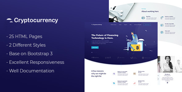 Cryptocurrency – new unique, modern, with elegant curves and simple forms, fully responsive HTML theme, based on Bootstrap 4.0 created using HTML and LESS.