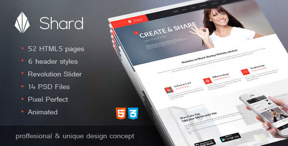 Shard is ideal theme for any agency like creative design agency, web development agency, PR agency, fashion agency, as a theme for startup company or well established company. It would also look great for product or service landing page or product microsite. With great collection of elements to choose from and present your product it is ideal theme for any startup company.