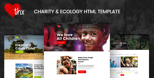 THX – Charity & Ecology HTML Template. Useful template and web elements for charity, donation and ecology campaigns. Modern colors, practical layout and simple forms. Free font Poppins from Google Fonts.