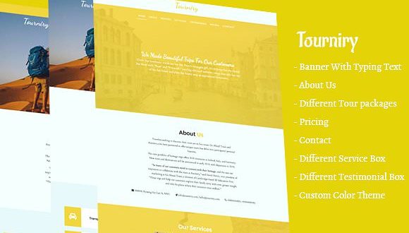 Tourniry is an HTML5 site template. It is suitable for travel agency, tour agency, freelancer tour agency. It comes with all necessary things for small tour agency. We made this template depend on our old experiences on travels & tour websites. This template support customization template color, clean html, css and js. We would do more update in future.