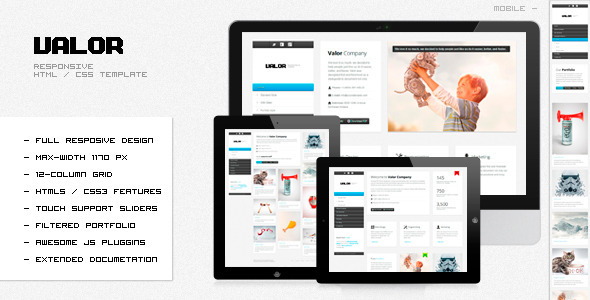 Powerful site template designed in a clean and minimalistic style. This template is very flexible, easy for customizing and well documented, approaches for personal and professional use. VALOR has been coded in HTML5 & CSS3 and jQuery. It has a solid flexible responsive layout that scales from 320px to 1260px width all Bootstrap features. Follow me to be notified for future updates!