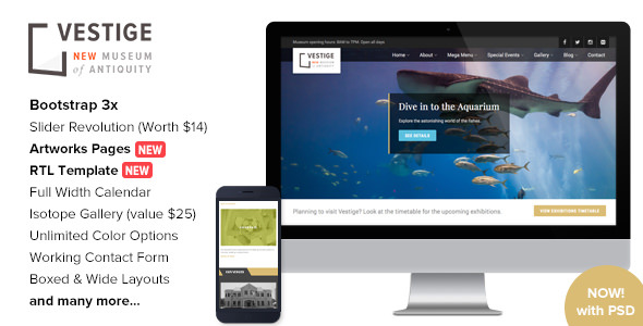 Vestige is a full functional HTML5 Template designed & developed for Museum, Events, Charity or Non Profit Websites and comes handy for Corporate Business Websites as well.