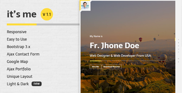 Its-me- is a Professional Responsive Vcard | Personal and Portfolio Resume HTML5 Template which has been built using Twitter Bootstrap framework.