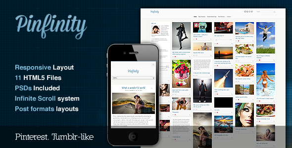 Demo: https://themeforest.net/item/pinfinity-responsive-tumblrlike-site-template/2776231