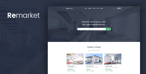 Demo: https://themeforest.net/item/remarket-real-estate-template/20368219