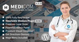 Medicom is a fully responsive premium Wordpress theme that suits to every medical & health websites. It is built with Bootstrap 3 and includes lots of awesome features. It includes Premium Visual Composer page builder and Premium Layer Slider. Medicom includes Font Awesome and special Medicom Icons in it. You can use the incredible get direction option for your Google Maps too.Demo: http://themeforest.net/item/medicom-medical-health-wordpress-theme/7608871 Do you need any custome Development Click here and fill your requirement...