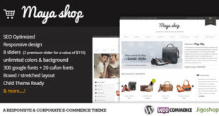 MayaShop is a fresh WordPress theme that utilises the powerful JigoShop and Woo Commerce plugins to create a versatile Wordpress powered shop, with unlimited layout options and unlimited skins. Make this theme your own.Demo: http://themeforest.net/item/mayashop-a-flexible-responsive-ecommerce-theme/2189918 Do you need any custome Development Click here and fill your requirement...
