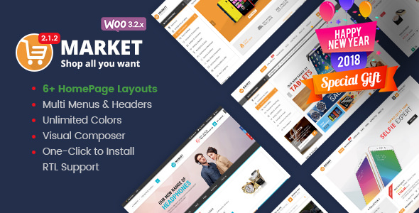 Market is an extremely elegant, customizable, easy to use WordPress eCommerce theme for multipurpose eCommerce sites. Following the new trends in design, this is an eye-catching and straightforward theme with flat design, multi-homepage layouts, multi-color presets, neat typography, smooth navigation and well-structured layout.