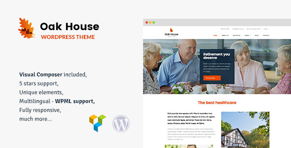 Oak House – Senior Care WordPress Theme is an great choose for retirement, rehabilitation homes websites.