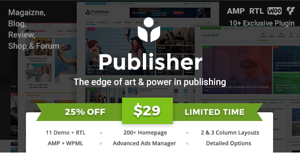 Publisher is the useful and powerful WordPress Newspaper , Magazine and Blog theme with great attention to details, incredible features, an intuitive user interface and everything else you need to create outstanding websites.