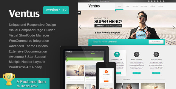 Ventus is one of the best responsive themes in ThemeForest. It’s a clean, modern and business wordpress themes which is suitable for business sites, portfolio sites and your enterprise or small company website. It’s a high rated responsive business WordPress theme in ThemeForest! It supports child themes and is a great responsive theme for developers and your company as well.